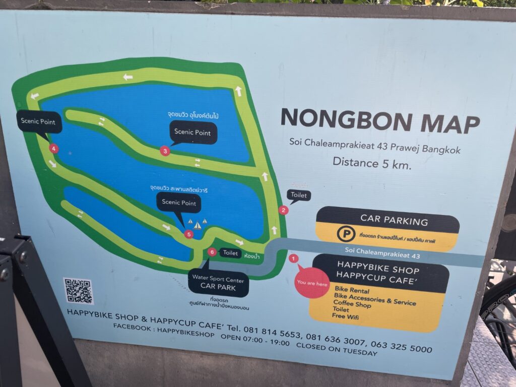 ノンボン池のサイクリングロードは距離にして5キロ。眺めのいいポイントも載せてくれてます。