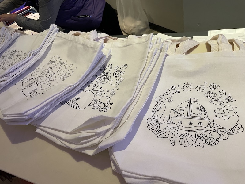 今月7月は週末限定ワークショップ(数に限りあり)が開催されていて塗り絵バッグが人数分もらえました♪