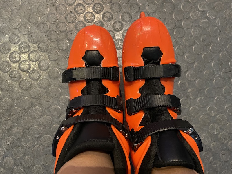 履くとこんな感じ。足首上まであるから痛くならないようちょっと長めで厚手の靴下がベスト!前回履いたのは結構ボロかった印象やけど今回は大丈夫そう。笑