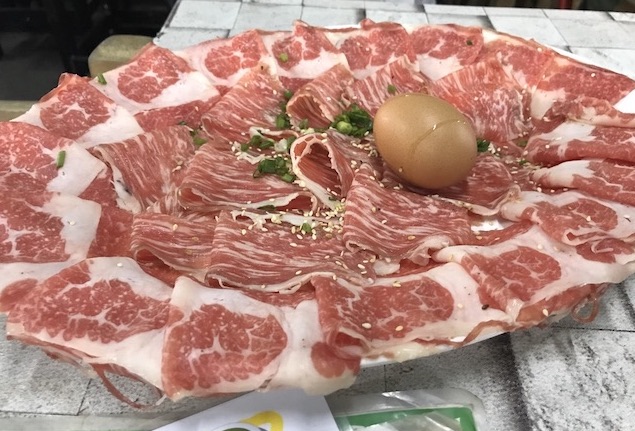 お隣さんのタイ人グループはチムチュム用の土鍋でこのお肉たちを食べてました。