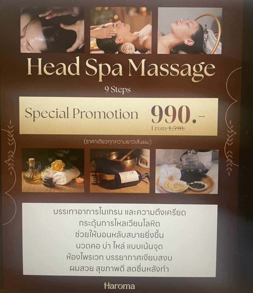 ヘッドスパマッサージ(9ステップ):990バーツ 75分
